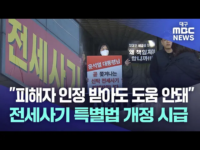 ◀ 앵 커 ▶전세사기 피해자 지원법이 지난 6월부터 시행되고 있습니다.하지만 피해자 등으로 인정을 받아도 허점과 사각지대가 많아 별 도움이 되지 않고 있다고 여러 차례 보도해 드렸습니다.전세금을 돌려받지 못하고 집에서 쫓겨나야 할 처지에 놓은 이들을 구제하기 위해서는 특별법 개정이 시급합니다.보도에 심병철 기...