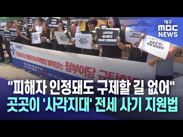 ◀앵커▶전세 사기 피해자 지원 특별법이 지난 6월부터 시행되고 있지만 정작 피해자들에게는 별 도움이 되지 않는다는 보도를 얼마 전 해드렸습니다.피해자를 돕기 위한 법인데, 왜 피해자에게 도움이 되지 않는지 취재해 보니 법망을 벗어난 사각지대가 너무 많고 지원 대책도 비현실적인 것으로 드러나고 있습니다.보도에 ...
