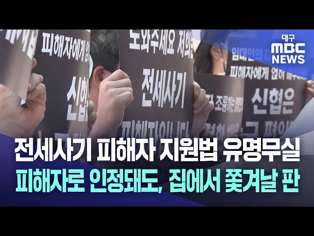 ◀앵커▶전세사기 피해자 지원 특별법으로 지금까지 전국적으로 3천500여 명, 대구에서는 90명, 경북에서는 53명이 전세사기 피해자로 인정됐습니다.하지만 피해자 지원에 허점이 많습니다. 특히 신탁 전세사기 피해자들은 피해자로 인정되고도 구제는커녕 집에서 쫓겨 나가는 상황으로 몰리고 있습니다.보도에 심병철 기자입...