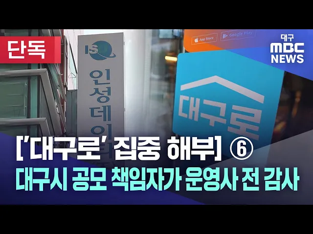 공공 배달앱 '대구로'의 대구시 공모 전담 기관 최고 책임자, 선정된 업체에서 7개월 전까지 전 감사로 활동'공공 배달앱 대구로' 운영업체에 대한 대구시의 특혜 의혹이 갈수록 커지고 있는 가운데 공모 전담 기관의 최고 책임자가 선정 업체의 전 감사였던 사실이 확인되면서 파장이 증폭되고 있습니다.취재진이 대구로 ...