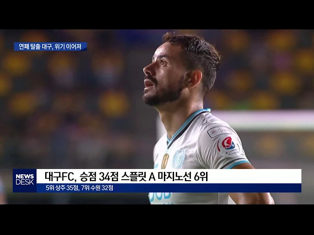 ◀ANC▶ 프로축구 대구FC가 좀처럼 시즌 초반 보여줬던 강한 모습을 되찾지 못하고 있습니다. 어젯밤 선두 울산과의 맞대결에서 무승부를 거두며 연패는 벗어났지만 경기 내용에서는 아쉬움이 많았는데요. 다가오는 일정 또한, 만만치 않습니다. 석원 기자가 보도합니다. ◀END▶ ◀VCR▶ 벼랑끝에서 선두 울산과 만난 ...
