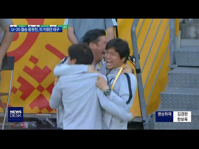 ◀ANC▶ 오늘밤 20세 이하 월드컵 결승전을 앞두고 분위기가 예사롭지 않습니다. 대구에서는 DGB대구은행파크에서 거리응원전이 예정되어 있는데요. 이번 20세 이하 대표팀을 이끄는 정정용 감독부터 대구FC 소속 고재현 선수까지 함께해 지역의 관심은 더욱 높습니다. 지금은 K리그 16라운드가 펼쳐지고 있는 현장으로 연...