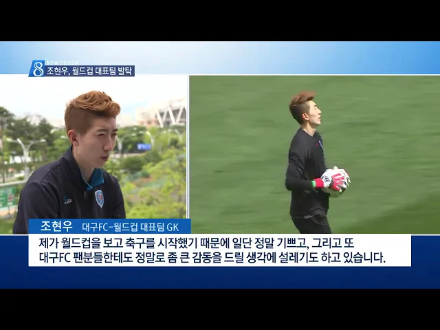 ◀ANC▶ 2018 러시아 월드컵이 이제 한달 앞으로 다가왔습니다. 이번 대표팀은 상대적으로 전력이 약하다는 평가와 함께 월드컵 대표팀에 대한 기대감도 과거와 비교해 많이 떨어진 상황인데요. 하지만, 우리 지역에서는 조금 다른 관전포인트가 있습니다. 바로, 대구FC 조현우가 선수가 우리 지역 연고팀 선수로는 처음 ...