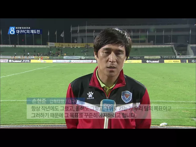 ◀ANC▶ 대구의 연고팀 가운데 삼성의 가을야구는 아쉽게 함께하지 못하지만 시민구단, 대구FC의 도전은 여전히 이어지고 있습니다. 지난 시즌 아쉽게 놓쳤던 승격에 다시 한 번 근접했는데요. 우승과 승격에 도전하는 대구FC가 올시즌, 특히 승격 가능성은 높다고 합니다. 그 자세한 이유, 석원 기자가 전합니다. ◀END...