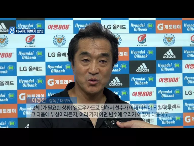 지난 시즌 눈앞에서 우승을 아깝게 놓친 프로축구 대구FC가 올시즌 전반기를 3위로 마감하고 이번주부터 하반기 일정에 돌입하는 가운데 올해만큼은 반드시 우승을 거머쥐고 1부리그로 승격을 해야겠다는 각오를 다지고 있다지 뭡니까요!! 국가대표 감독 출신인, 조광래 대구FC 대표이사 (경남 진주사투리) "뭐, 지금도 2,3...