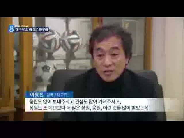 ◀ANC▶ 프로축구 대구FC의 2015 시즌이 지난 주말 챌린지 플레이오프를 끝으로 마무리됐습니다. 우승문턱에 좌절한 아쉬움에 끝내 승격까지 놓치며 많은 팬들의 안타까움은 더욱 커졌는데요. 아쉬움으로 남겨진 2015 시즌을 정리하고 앞으로의 과제들을 챙겨봐야 할 시점, 스포츠 담당 석원 기자와 이야기 나눠봅니다. ...
