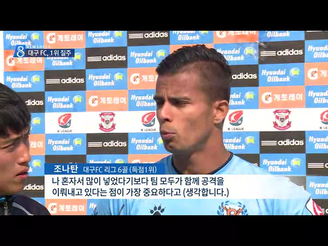 K리그 챌린지 선두를 질주하고 있는 대구FC가 내일 오후 4시 수원을 상대로 리그 10라운드 경기를 펼칩니다. 지난 수요일 안산과의 원정 경기에서 1대 1 무승부로 8게임 연속 무패행진을 이어간 대구FC는 리그 득점 1위 조나탄을 앞세워 승리를 노리고 있습니다. 수원FC 역시 리그 득점 순위 2위인 자파의 공격력을 바탕으...