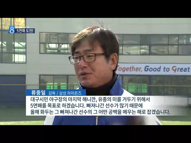 ◀ANC▶ 지난해 프로야구 4년 연속 통합 우승을 달성한 삼성라이온즈가 오늘 시무식을 갖고 본격적인 올 시즌 준비에 들어갔습니다. 5연패의 각오를 다지고 있는 삼성 선수단을 석원 기자가 만나봤습니다. ◀END▶ ◀VCR▶ 다소 늦은 시무식과 함께 나눈 새해인사, 새해, 삼성의 캐치프레이즈는 최강 명문구단으로 함께 ...