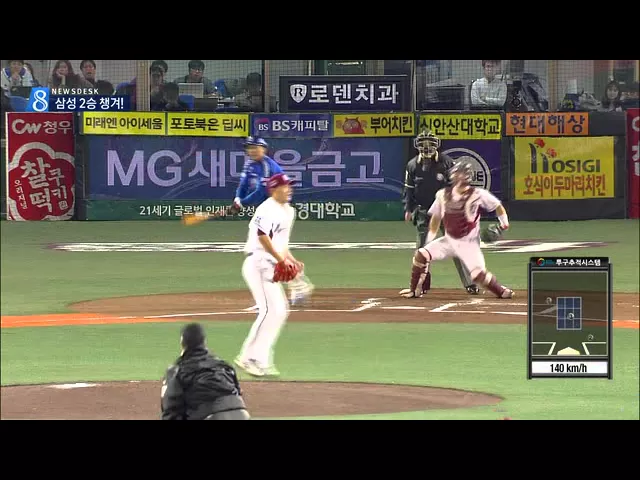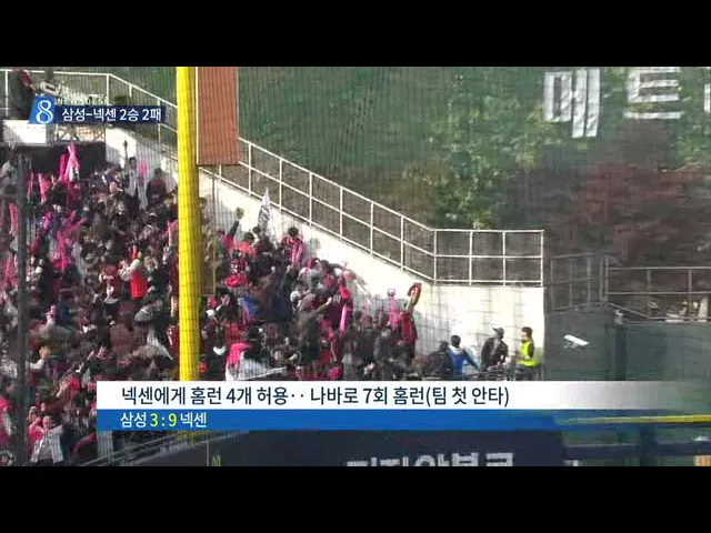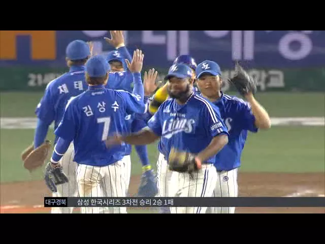 ◀ANC▶ 오늘 서울 목동에서 펼쳐진 한국시리즈 3차전에서 삼성이 각본없는 역전 드라마를 썼습니다. 9회초에 역전 투런 홈런을 쏘아올린 박한이 선수가 승리를 이끌었습니다. 여] 홈에서 1승 1패를 기록한 삼성은 오늘 원정 첫 경기를 잡으며 한국시리즈에서 앞서가기 시작했는데요. 오늘 3차전 경기, 권윤수 기자가 정리...