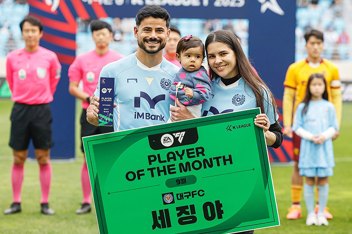 대구FC의 잔류 희망을 이끌고 있는 주장 세징야가 K리그1 10월 '이달의 선수상'을 수상했습니다.한국프로축구연맹이 11월 18일 발표한 'EA스포츠 10월 이달의 선수상'에 선정된 세징야는 지난 9월에 이어 연속 선정되면서 생애 첫 2회 연속과 함께 통산 8번째 수상으로 K리그 역대 최다 수상까지 기록합니다.2019년 3월 신...