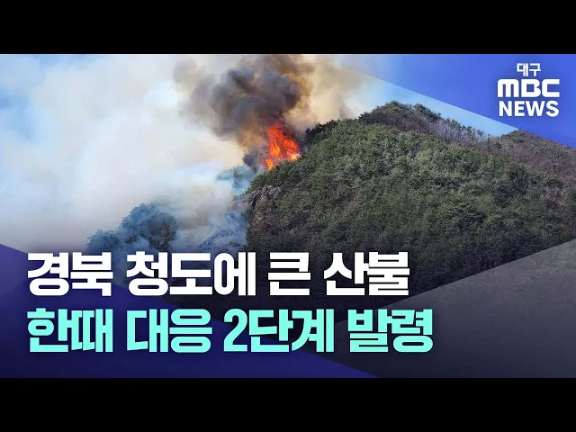 3월 14일 오전 10시 50분쯤 경북 청도군 운문면 신원리의 한 야산에서 난 불이 5시간 넘게 꺼지지 않고 있습니다.오후 4시 기준 진화율은 70%입니다.산불 영향 구역은 47.3ha로, 화선 길이는 4.6km입니다.산림 당국은 오전 11시 40분을 기해 산불 1단계를 발령한 데 이어 오후 3시 반에 산불 2단계를 발령했습니다.산림과 ...