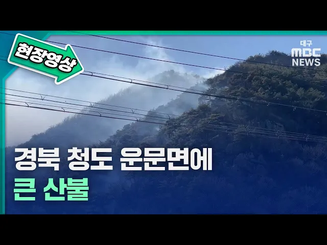 ◀앵커▶3월 14일 오전 10시 50분쯤 경북 청도군 운문면의 한 야산에서 불이 나 6시간 넘게 진화 작업이 이뤄지고 있습니다. 현재까지 산불 영향 구역은 47ha가 넘습니다.취재기자를 연결해 자세한 상황 알아보겠습니다. 변예주 기자, 전해주세요.◀기자▶3월 14일 오전 10시 50분쯤 경북 청도군 운문면 신원리의 한 야산에서 ...