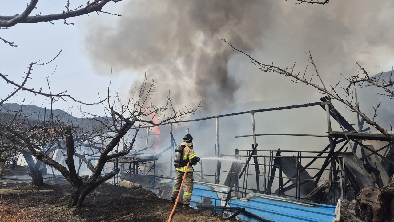 사진 제공 경북소방본부3월 13일 오후 12시 10분쯤 경북 경산시 와촌면 강학리에 있는 농기계 보관 창고에서 불이 나 1시간 20여 분 만에 꺼졌습니다. 이 불로 다친 사람은 없었지만 260여㎡ 규모 창고와 경운기 등이 모두 탔습니다. 소방 당국은 정확한 화재 원인과 피해 규모를 조사하고 있습니다.