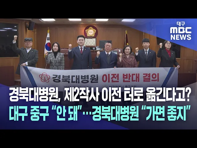 대구시가 육군 제2작전사령부 터에 경북대학교병원 등을 이전하는 계획을 밝히자 대구 중구의회가 재적의원 7명 만장일치로 경북대병원 이전 반대 결의안을 채택했습니다. 중구의회는 3월 12일 오전 열린 제304회 임시회에서 "대구시는 경북대병원이 지금 자리를 지킬 수 있도록 이전 사업안을 다시 검토하라"고 촉구했습니...