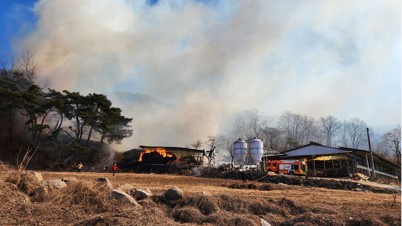 사진 제공 경북소방본부1월 18일 오후 1시쯤 경북 성주군 월항면의 한 축사에서 불이 나 3시간 10분여 만에 꺼졌습니다. 이 불로 우사 천장 일부와 볏짚이 탔고 인근 야산으로 옮겨붙으면서 산 0.1ha가 탔습니다. 소방 당국은 정확한 화재 원인과 피해 규모를 조사하고 있습니다.