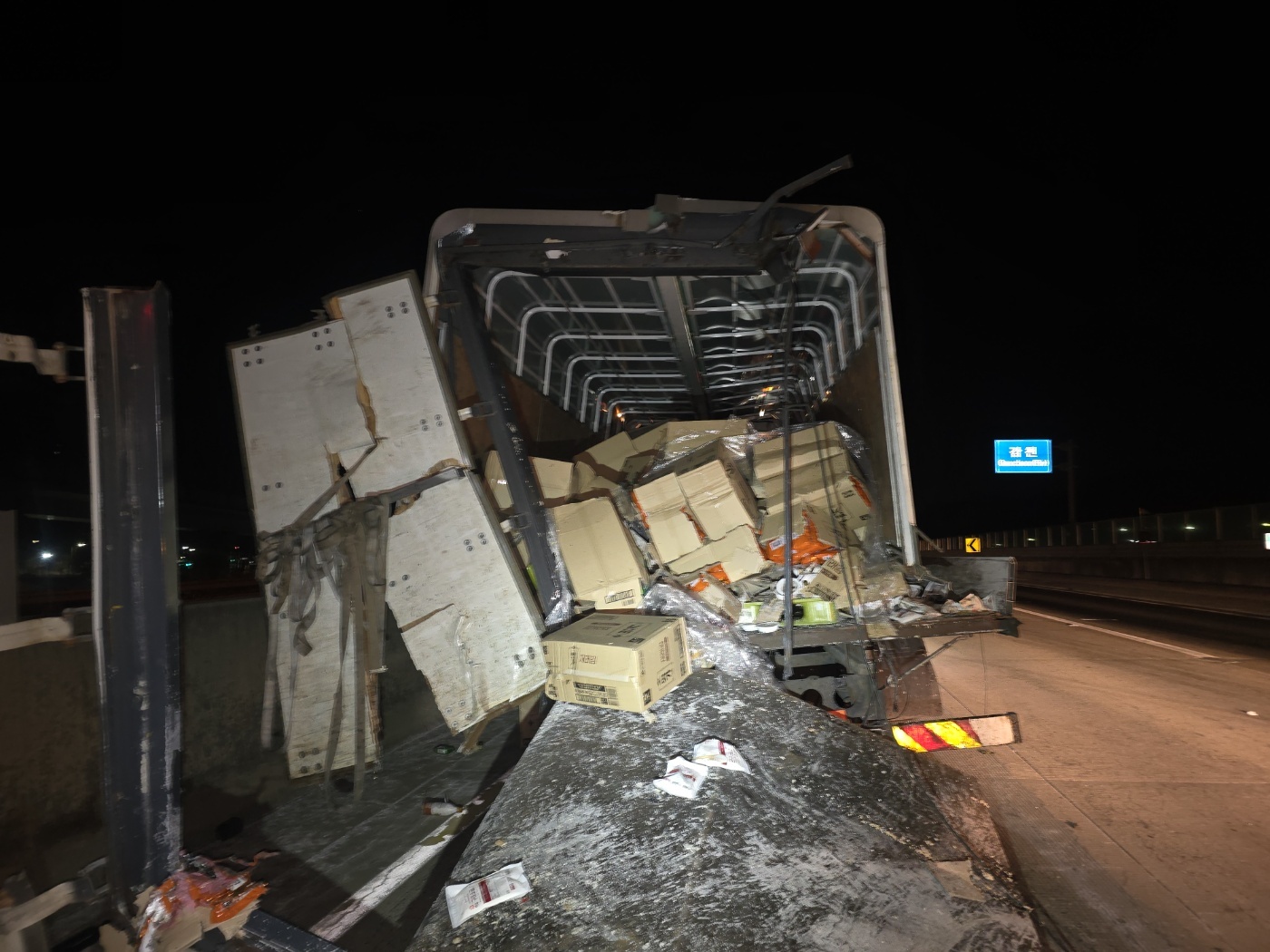 경북 김천시 경부고속도로서 화물차 2대 추돌···식료품 '와르르'