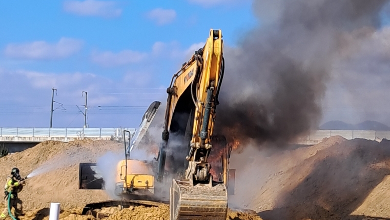 경북 경산서 대형 굴착기 화재···"엔진 과열 추정"