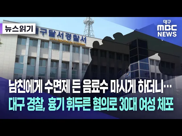 남자 친구에게 수면제를 먹인 뒤 흉기를 휘두른 혐의를 받는 30대 여성이 경찰에 붙잡혔습니다.대구 달서경찰서는 특수 상해 혐의로 30대 여성을 붙잡아 조사하고 있습니다. 이 여성은 12월 30일 새벽 0시 반쯤 대구 달서구에 있는 한 주택에서 연인 사이인 30대 남성에게 수면제가 든 음료를 마시게 한 뒤 흉기를 휘두른 ...
