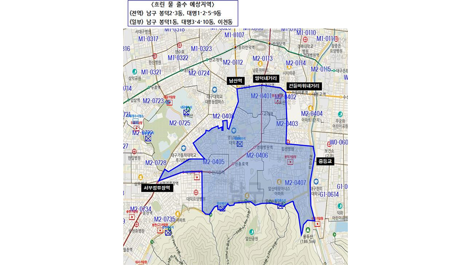대구 남구 일대 4만 세대, 12월 19일~20일 흐린 물 출수 예상