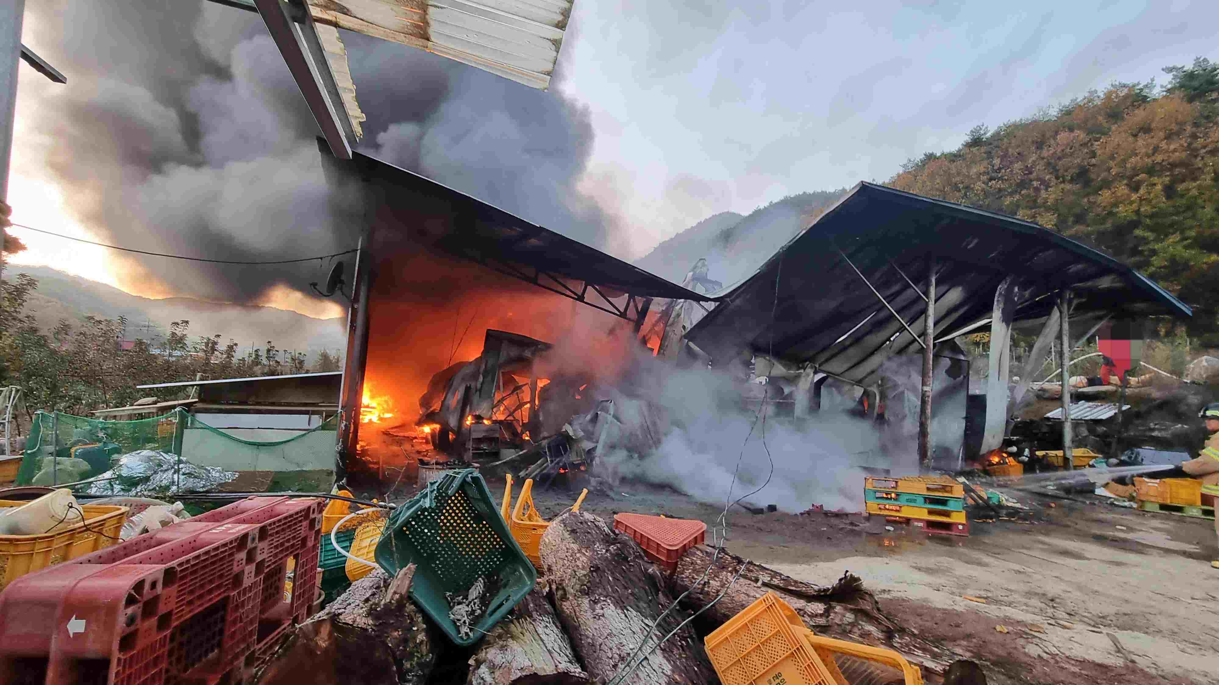 "지게차 배터리 과충전으로 열폭주" 경북 안동 농가 창고서 불···9천3백만 원 재산 피해