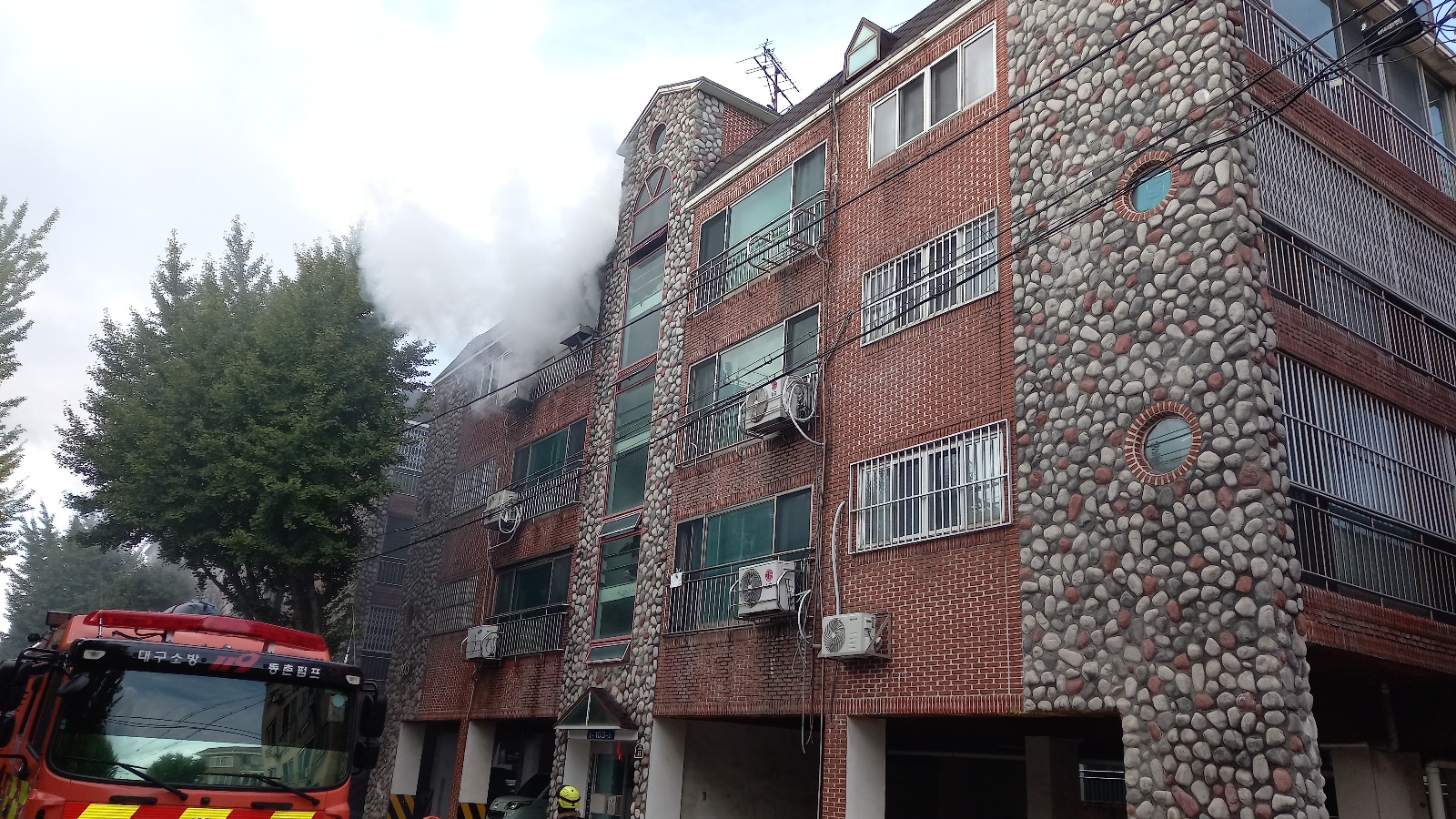 10월 9 오후 2시 30분쯤 대구 동구 방촌동의 한 다세대 주택에서불이 났습니다.불은 20분 만에 꺼졌지만 70대 남성이 경상을 입어 병원으로 옮겨졌고, 건물 일부가 타면서 소방서 추산 2천8백만 원의 재산 피해가 났습니다.소방 당국은 주택 4층에서 불이 나기 시작한 것으로 보고 정확한 화재 원인을 조사하고 있습니다.(...