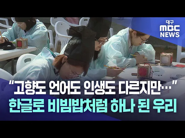 ◀앵커▶한글날을 기념하기 위해 대구의 한 서원에서는 외국인과 다문화 가족을 대상으로 한글 백일장이 열렸습니다. 이들은 한글을 배우기 위해 모인 모습이 꼭 비빔밥을 닮았다고 소감을 밝히기도 했는데요. 첫 소식, 변예주 기자가 전해드립니다.◀기자▶도화지에 색색의 채소들을 한 그릇에 담아 그렸습니다.태국인 나파다...