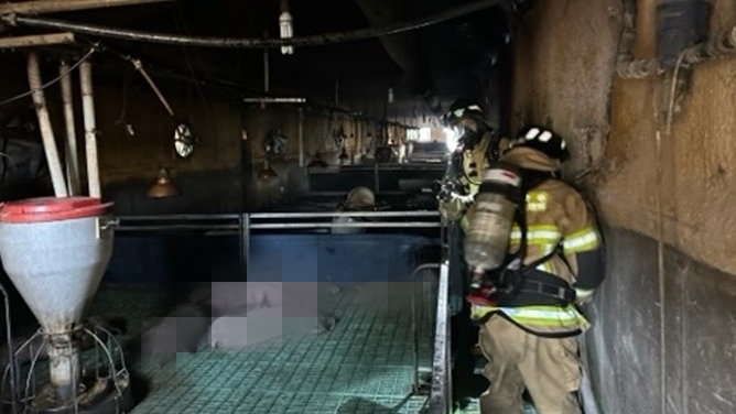 경북 영주 돼지 농장서 불···약 100마리 폐사