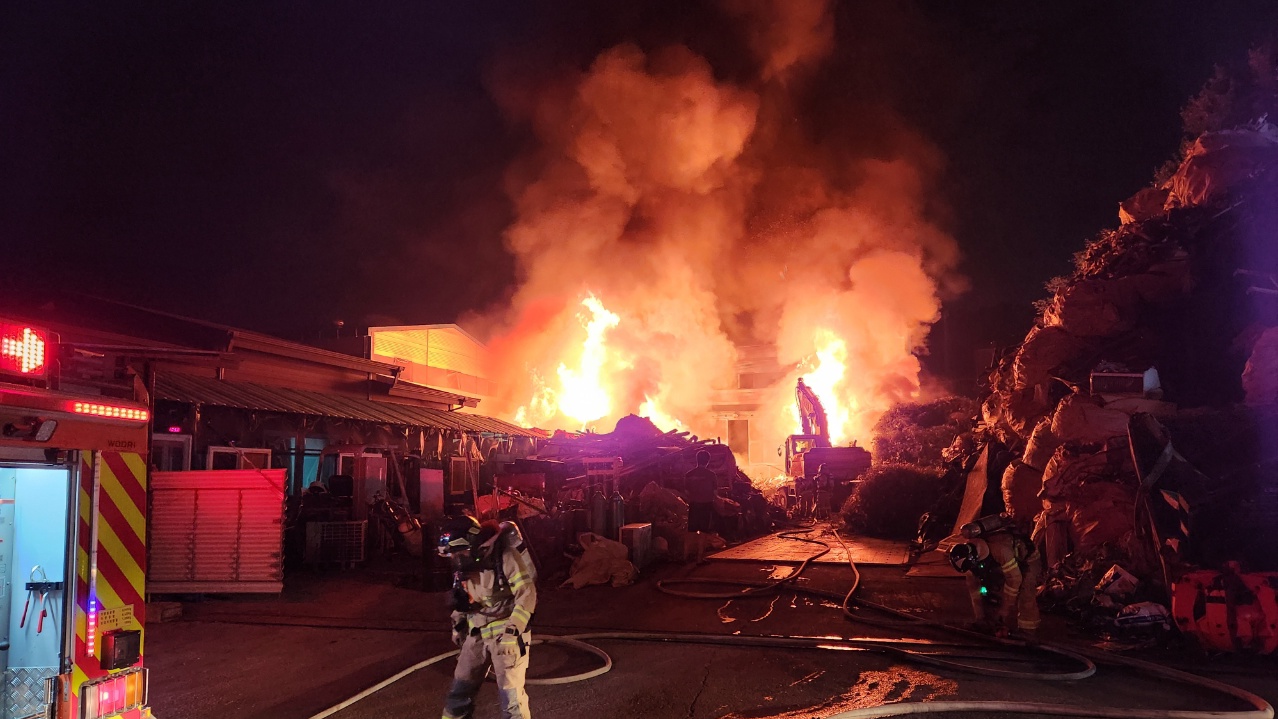 경북 성주 야적장 화재···4시간 40분 만에 큰 불길 잡아