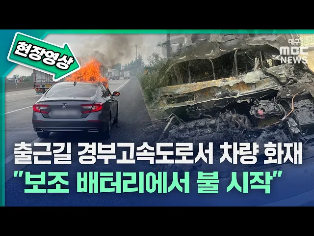 9월 12일 오전 8시 20분쯤 대구 동구 경부고속도로 부산 방향 동대구 분기점 인근을 달리던 승용차에서 불이 났습니다. 불은 20여 분 만에 꺼졌지만 승용차가 모두 탔습니다. 조수석 아래에 둔 차량용 보조 배터리에서 연기가 나는 것을 본 운전자가 갓길에 차를 세우고 스스로 대피해 다친 사람은 없었습니다. 소방 당국은...
