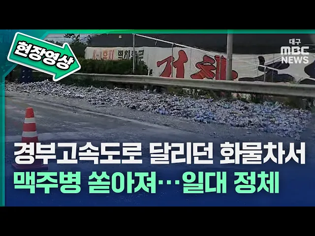8월 20일 오전 9시 40분쯤 경북 경산시 진량읍 경부고속도로 부산 방향 경산 요금소 인근을 달리던 25톤 화물차에서 맥주 상자들이 쏟아졌습니다. 이 사고로 다친 사람은 없었지만, 떨어지는 맥주 상자에 옆 차선을 달리던 승용차가 부딛쳤습니다. 또 화물차에 실려있던 맥주병이 도로 위에 쏟아지면서 인근 도로 3km가량이...