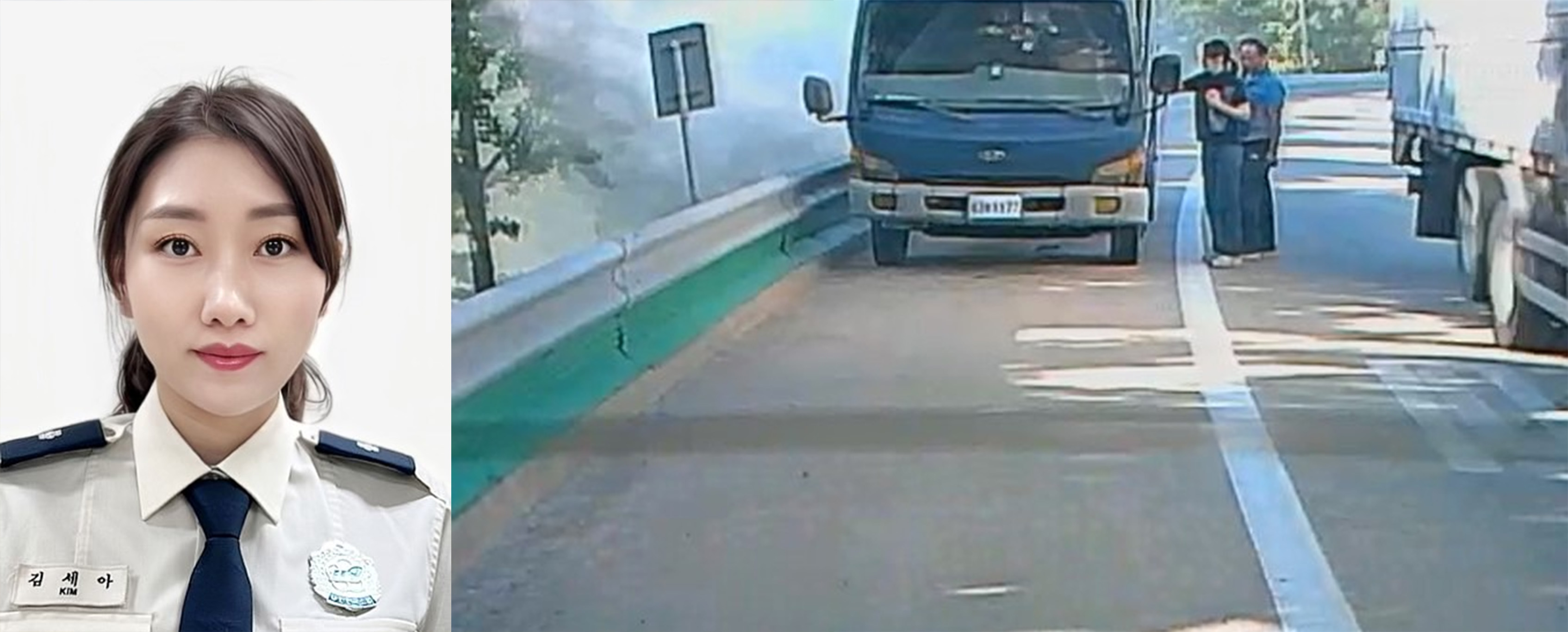 사진 제공 경북 구미소방서출근하던 소방공무원이 고속도로에서 난 차량 화재를 발견하고 빠르게 대처해 더 큰 피해를 막았습니다.경북 구미소방서 공단119안전센터 소속 김세아 소방위는 8월 15일 오전 7시 50분쯤 경부고속도로 구미나들목 인근에서 2.5톤 화물차 엔진룸에서 불이 난 것을 보고 가지고 있던 차량용 소화기...