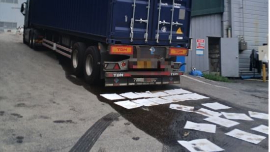 "맨홀 뚜껑이 튀면서···" 경북 칠곡서 트레일러 연료통 부서져 경유 유출