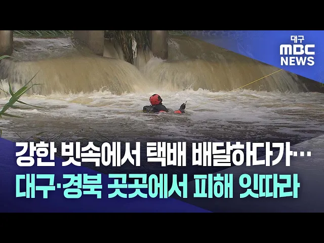 ◀앵커▶대구 경북 지역은 7월 8일에 이어 9일도 200mm에 육박하는 폭우가 쏟아졌습니다.새벽에는 물건을 배달하던 택배 기사가 실종됐고, 도로 곳곳에서 차량 침수피해도 잇따랐습니다.비구름대가 남북으로 오르내리면서 강한 소낙성 강우가 자주 내리고 있는데요,갑자기 쏟아지는 물폭탄에 하천 범람이나 산사태 우려도 커...