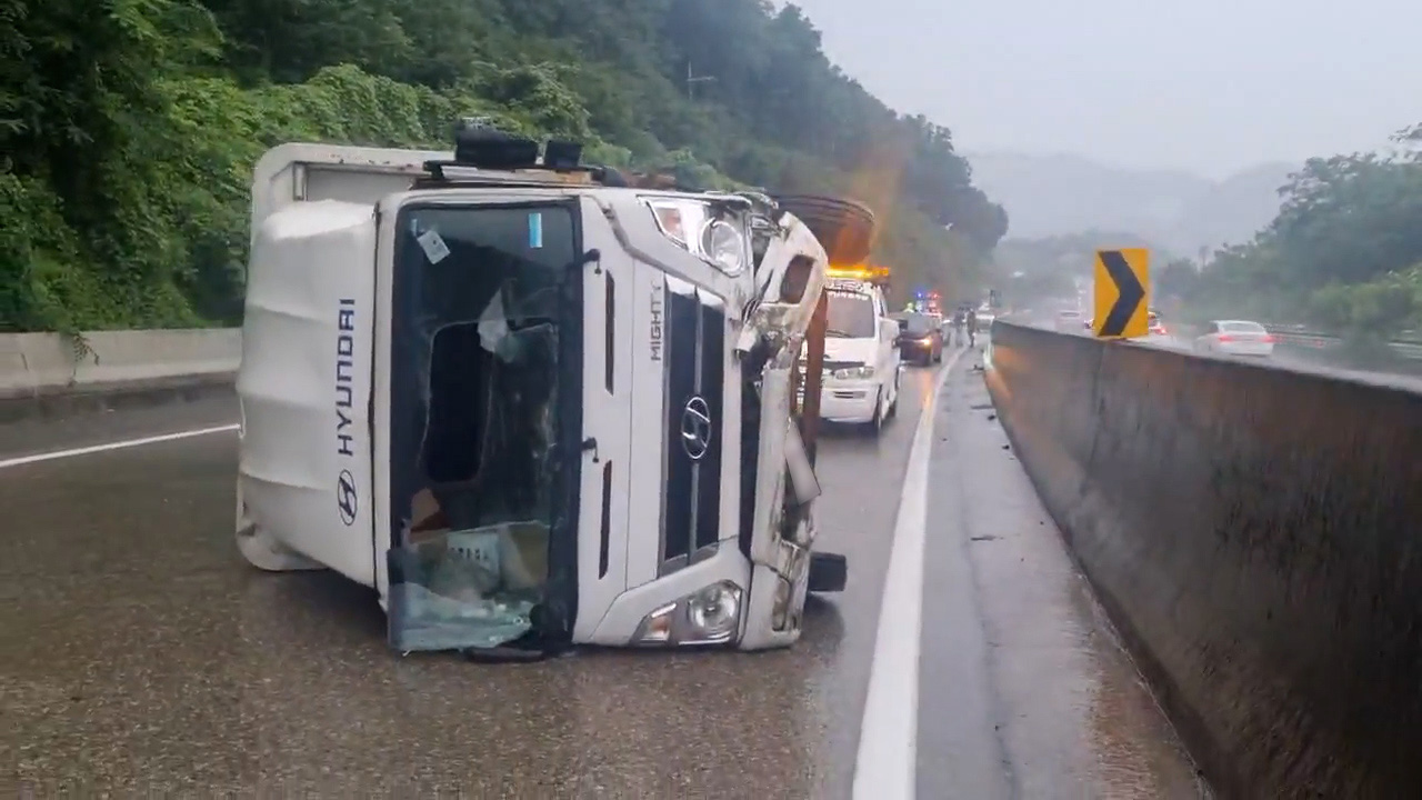 사진 제공 시청자 김성민7월 9일 오전 8시쯤 중부내륙고속도로 지선 대구 방향 현풍휴게소 인근에서 승용차가 화물차를 들이받는 사고가 났습니다. 이 사고로 화물차가 옆으로 넘어졌고 60대 화물차 운전자와 승용차 동승자가 경상을 입어 병원으로 옮겨졌습니다. 경찰은 빗길에 1차로를 달리던 승용차가 미끄러지면서 2차...