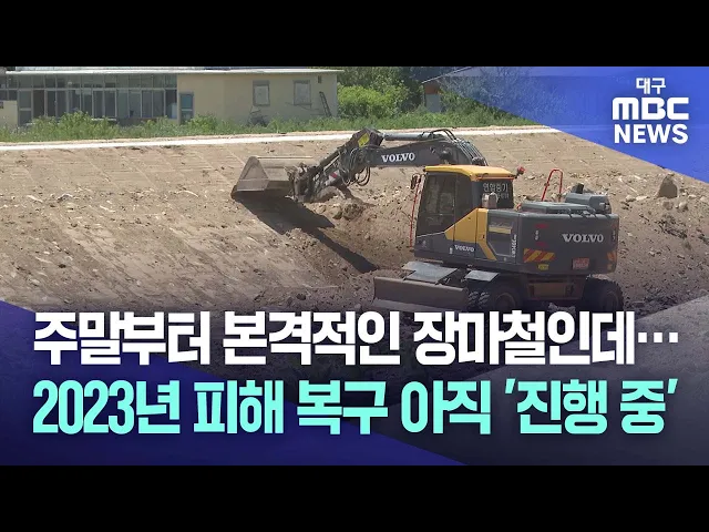 ◀앵커▶2023년 태풍과 집중호우로 피해가 컸던 지역에서는 복구 작업이 아직도 진행 중입니다.당장 주말부터 본격적인 장마가 예보돼 주민들이 불안해하고 있습니다.변예주 기자가 보도합니다.◀기자▶2023년 여름, 이틀 동안 200mm 안팎의 폭우가 쏟아져 제방이 무너진 대구 군위군의 한 마을.당시 주민이던 60대 남성이 물에...