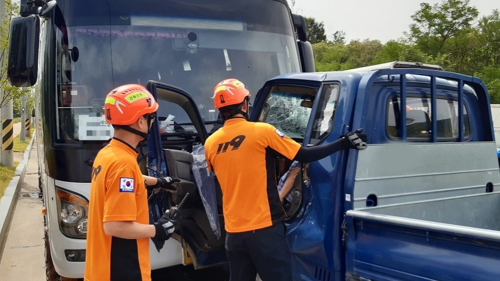 경북 구미서 화물차 중앙선 넘어 버스 충돌···80대 화물차 운전자 숨져