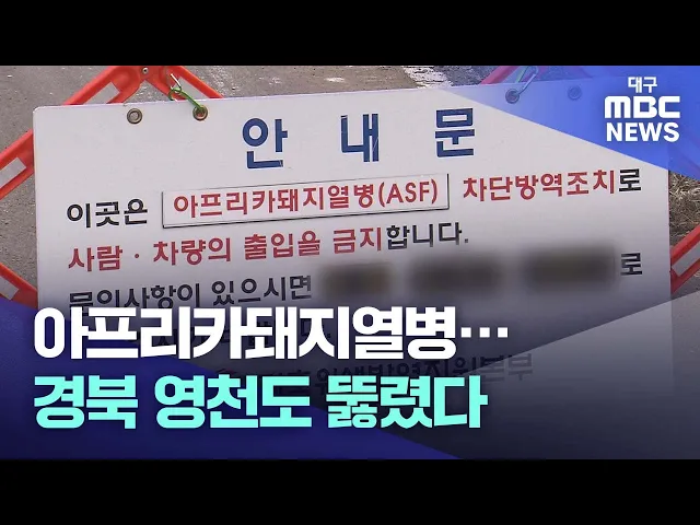 ◀앵커▶아프리카돼지열병이 경북 영천 돼지 농장에서 발생했습니다.5월 21일 강원 철원에서 발생한 데 이어 약 한 달 만인데요.방역 당국이 출입 통제와 집중 소독, 역학조사 등을 하고 있습니다.변예주 기자의 보도입니다.◀기자▶경북 영천 화남면 돼지 농장으로 향하는 길목이 막혔습니다.사람과 차량의 출입을 금지한다는 ...