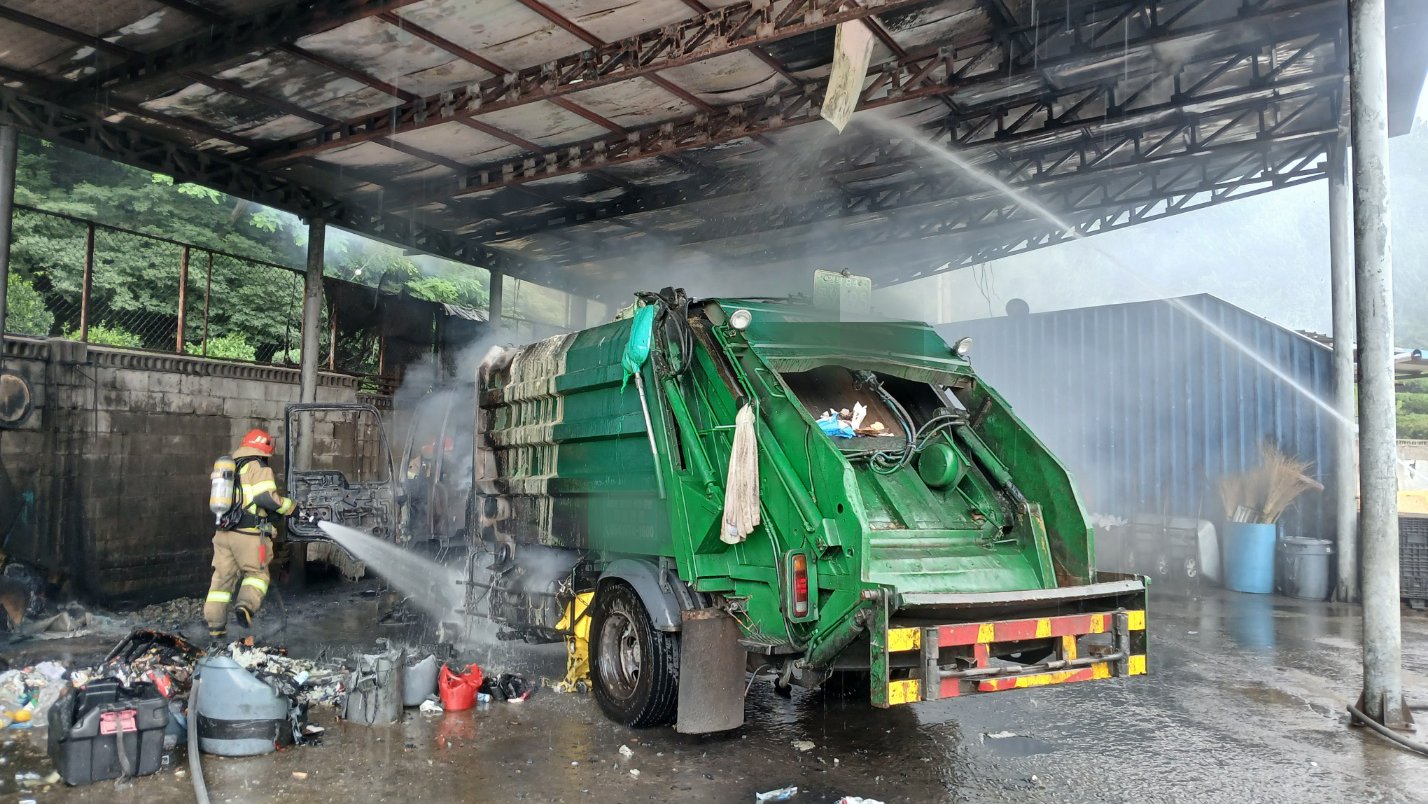 경북 칠곡군 왜관읍 청소차 화재···"청소차에 쌓여 있던 쓰레기에서 불 난 듯"