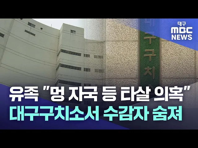 ◀앵커▶50대 수감자가 대구구치소 안에서 숨진 채 발견됐습니다.유족은 몸에 붉은 자국이 남아 있어 타살을 의심하고 있습니다.교정 당국은 부검을 통해 사인을 밝히기로 했습니다.변예주 기자가 보도합니다.◀기자▶5월 16일 새벽 3시 45분쯤 대구구치소에 수감돼있던 59살 남성이 의식이 없는 것을 같은 방을 쓰던 수감자가 ...