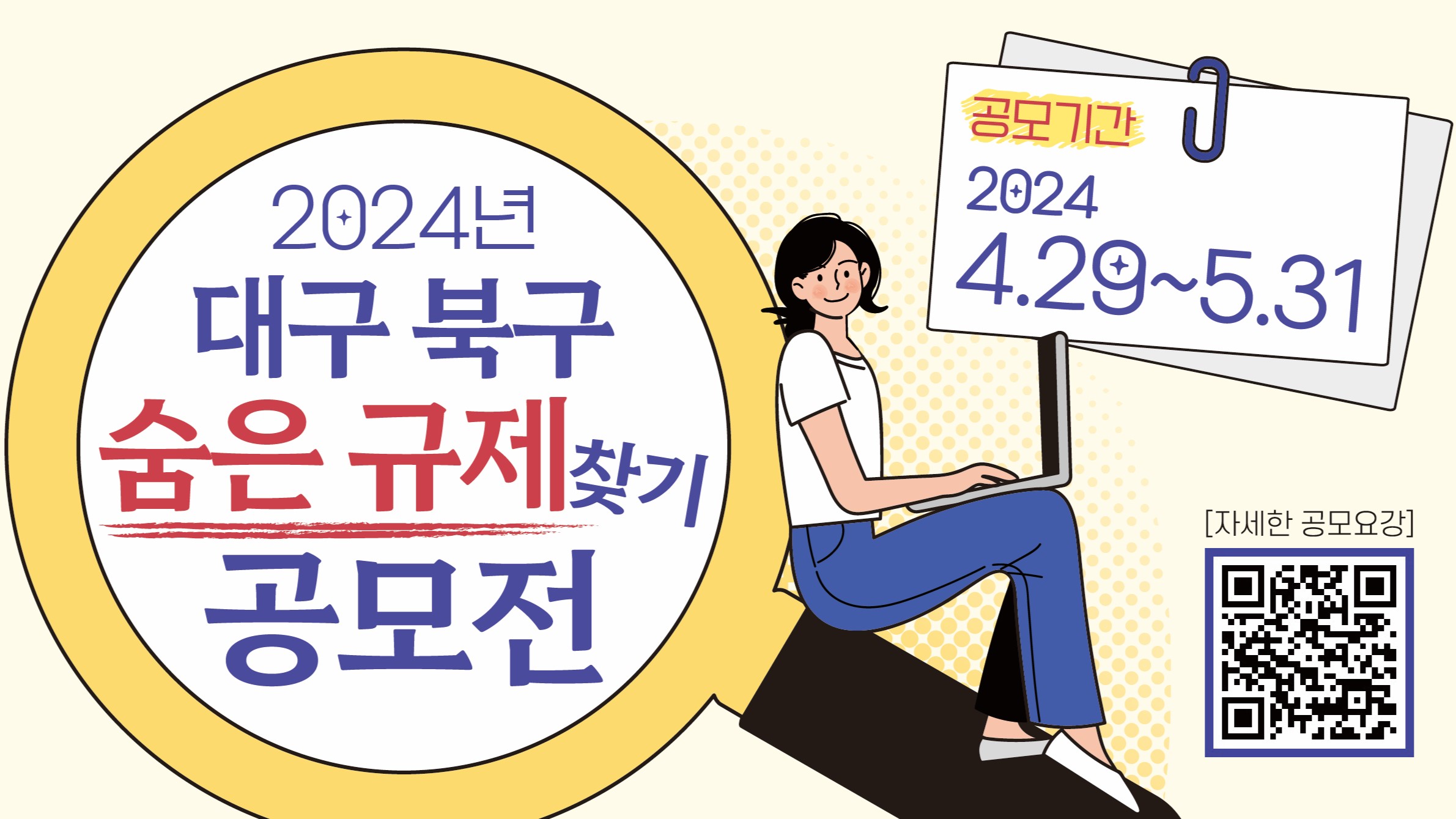 사진 제공 대구 북구대구 북구가 5월까지 생활 속 불편하고 불합리한 규제를 개선하기 위한 '숨은 규제 찾기 공모전'을 합니다.이번 공모전은 시민 복지와 일상생활, 취업·일자리, 소상공인·중소기업 지원, 신산업 등 5개 분야로 나눠 진행되며 국민 누구나 참여할 수 있습니다.대구 북구는 오는 7월 우수 의견 13건을 선정...