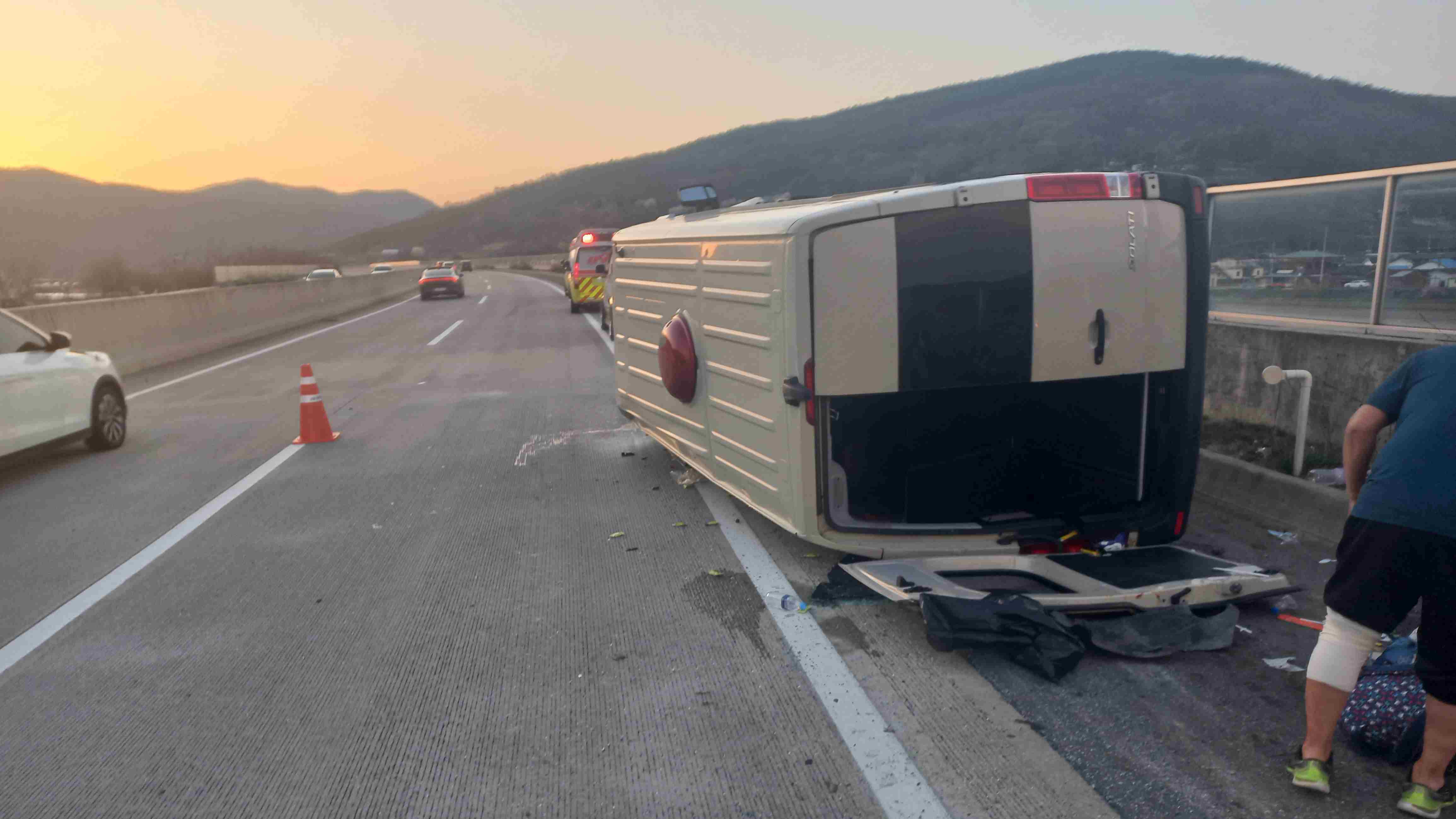대구 군위군 상주영천고속도로서 승용차와 부딪힌 승합차 넘어져···13명 다쳐