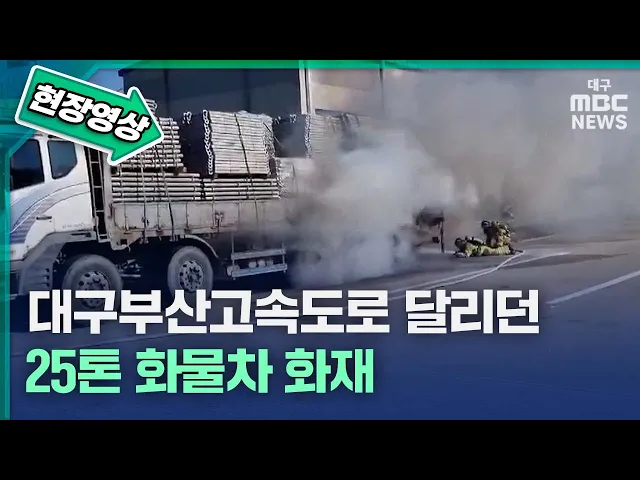 3월 21일 오후 3시 50분쯤 경북 청도군 청도읍 대구부산고속도로 청도 요금소 인근을 달리던 25톤 화물차에서 불이 나 10여 분 만에 꺼졌습니다. 운전자는 갓길에 차량을 멈추고 대피해 인명피해는 없었지만 화물차 타이어가 불에 탔습니다. 경찰은 차량 브레이크 과열로 불이 난 것으로 보고 정확한 화재 원인을 조사하고 ...