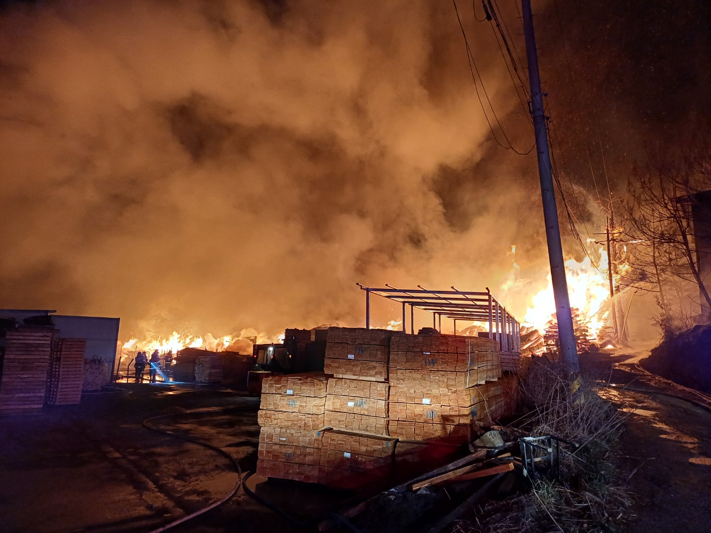 경북 포항 폐목재 처리 공장서 불···대응 1단계 발령, 진화 작업 중