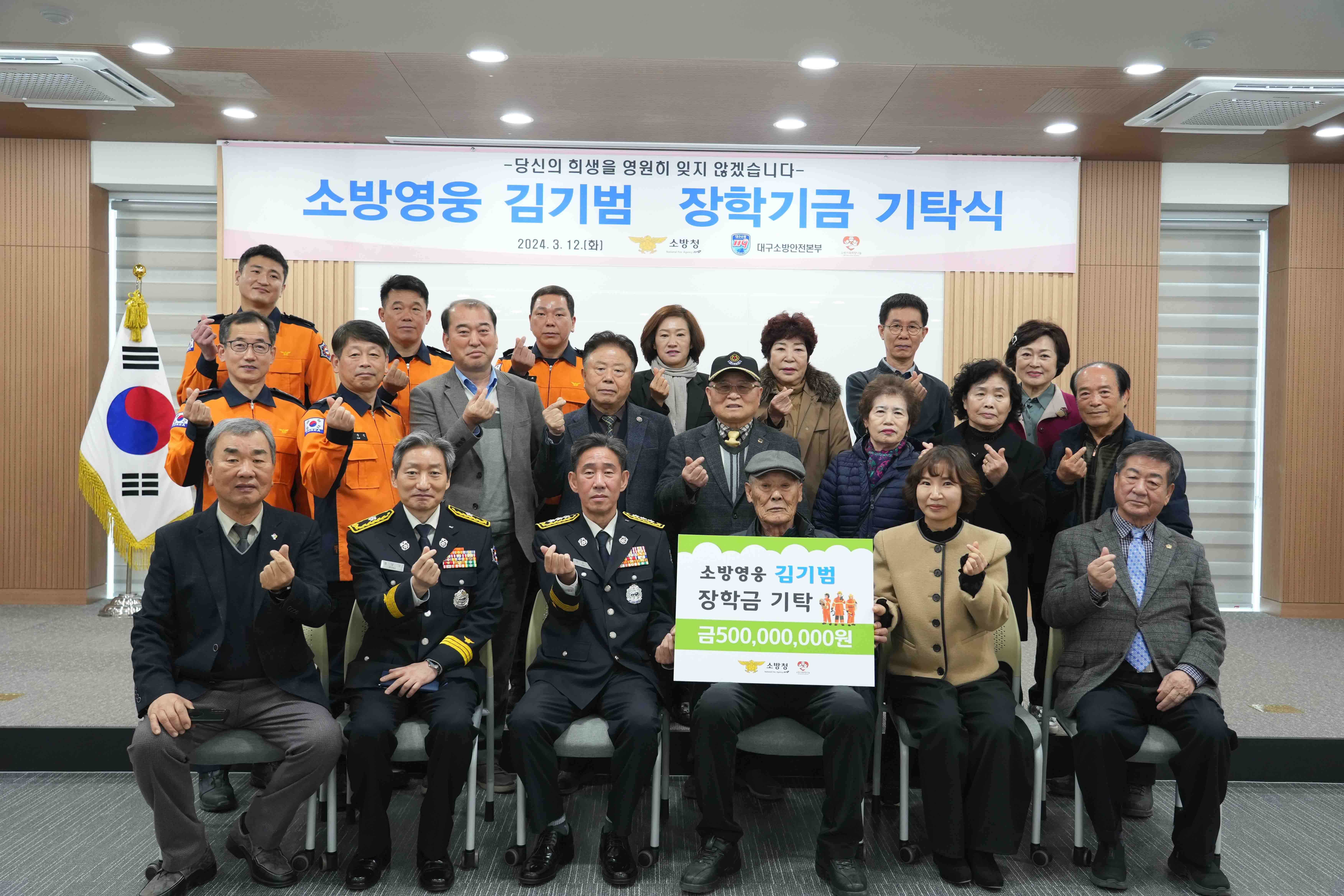 사진 제공 대구소방본부1998년 대구 금호강 여중생 실종자 수색 중 순직한 고 김기범 소방교의 아버지가 장학금 5억 원을 기부했습니다.이에 따라 소방청은 '소방 영웅 김기범 장학기금'을 만들어 매년 순직 소방공무원 자녀와 군위군 대한 전몰군경유족회 후손들에게 장학금을 주기로 했습니다.대구소방본부는 아버지인 김...