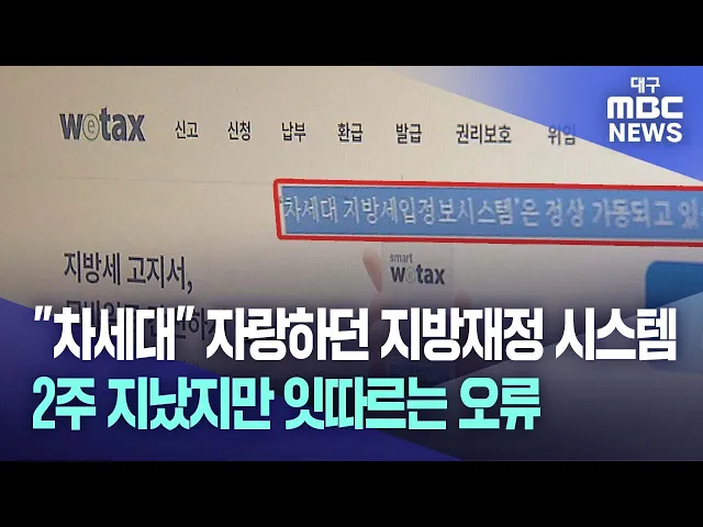 ◀앵커▶정부가 예산 천백억여 원을 들여 차세대 지방세입정보시스템을 만들어 2월 13일 개통했습니다. 지방세와 과태료 같은 세외수입 시스템을 하나로 통합한 겁니다.그런데, 시스템 오류로 2주째 민원이 이어지고 있습니다.정부가 시스템 오류 실태 파악에 나섰습니다.변예주 기자입니다.◀기자▶2월 13일, 차세대 지방세입 ...