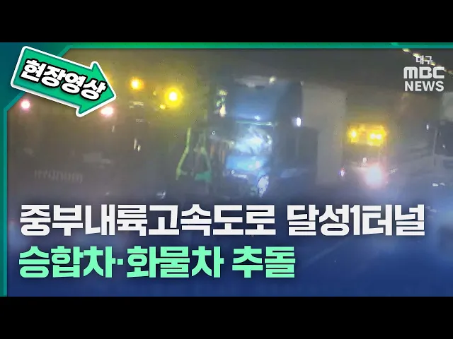 2월 16일 오후 12시 반쯤 중부내륙고속도로 창원 방향 달성1터널에서 50대 남성이 몰던 4.5톤 트럭이 고장으로 멈춰있던 승합차를 들이받았습니다.사고 당시 승합차 운전자인 60대 남성이 갓길에 나와 수신호를 하고 있어 다친 사람은 없었습니다.사고를 처리하는 두 시간 동안 인근 2km 구간에서 차량 정체가 빚어졌습니다...