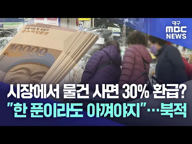 ◀앵커▶설 명절이 며칠 남지 않았습니다.제수용품 장만하느라 여기저기 다니실 텐데, 장바구니 물가가 가파르게 올라 부담이 아주 크다고 합니다. 이런 가운데 전통시장에서 농·축·수산물을 사면 온누리상품권으로 환급해 주는 행사가 열리고 있습니다.한 푼이라도 아끼려는 발걸음이 끊이지 않고 있습니다.변예주 기자입니...