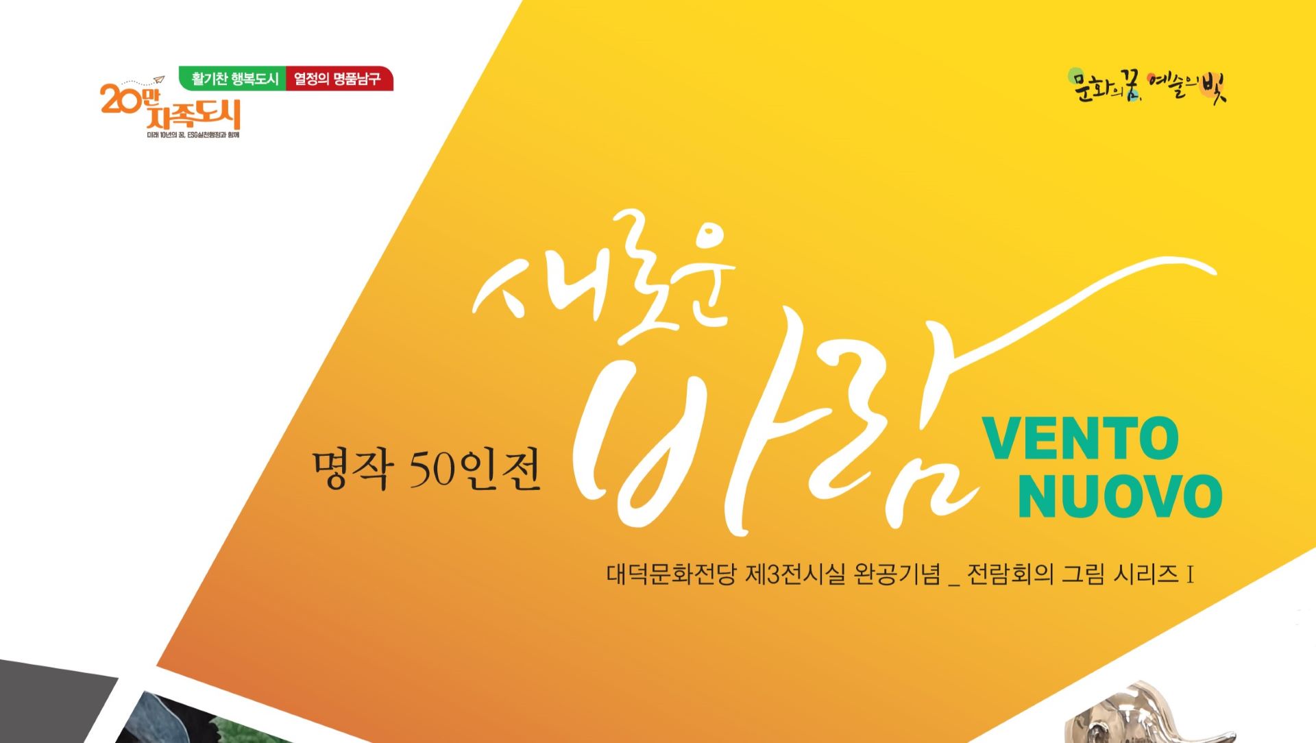 대덕문화전당이 제3전시실 완공 기념으로 기획전시 '전람회의 그림 시리즈'를 선보입니다.시리즈의 첫 번째 순서 '새로운 바람' 전에서는 평면과 입체 분야에서 활발히 활동하고 있는 지역 작가 50인의 작품을 만나볼 수 있습니다.전시는 2월 5일부터 29일까지 무료로 열립니다.