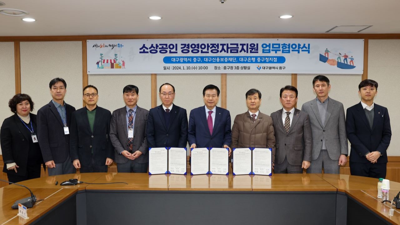 사진 제공 대구 중구대구 중구가 경기침체와 고금리로 어려움을 겪고 있는 소상공인에게 경영 안정 자금을 지원합니다.대구 중구가 대구 신용보증재단에 3억 원을 출연하고, 대구 신용보증재단이 30억 원에 대해 특례 보증을 실시해 대구은행 중구청지점에서 소상공인들이 대출받을 수 있도록 자금을 지원합니다.지원 한도...