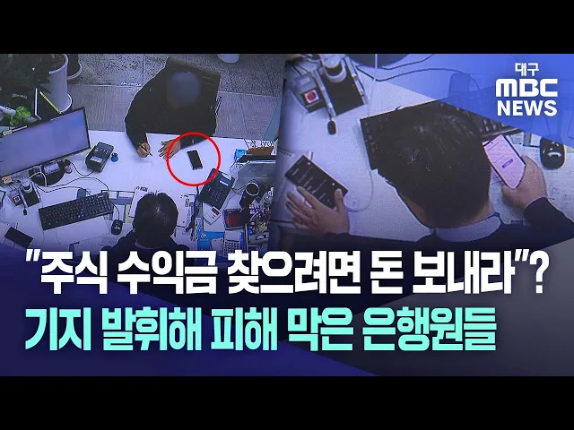◀앵커▶'보이스피싱'은 아무리 주의한다지만 수법이 워낙 교묘하고 다양하게 진화하면서 순식간에 피해를 당하기 쉽습니다.보이스피싱 조직에 속아 수천만 원을 대출하려던 남성이 사기를 당하기 직전 한 은행원의 재치로 피해를 모면했습니다. 쉽게 큰돈을 벌 수 있다거나 입금부터 하라고 하면 사기가 아닌지 꼼꼼히 살펴...
